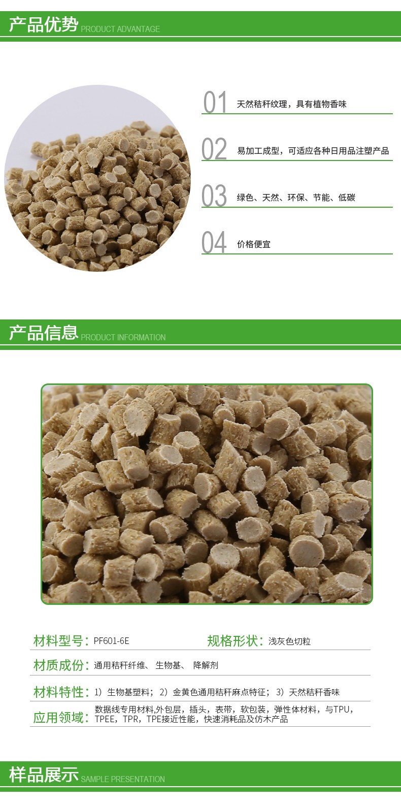 麥纖維復(fù)合材料PF601-6E的優(yōu)勢(shì):